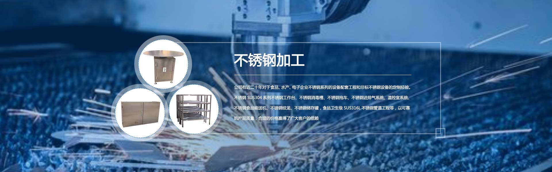 我公司有近二十年對(duì)于食品、水產(chǎn)、電子企業(yè)不銹鋼系列的設(shè)備配套工程和非標(biāo)不銹鋼設(shè)備的定制經(jīng)驗(yàn)。不銹鋼SUS304系列不銹鋼工作臺(tái)、不銹鋼消毒槽、不銹鋼拖車(chē)、不銹鋼進(jìn)排氣系統(tǒng)、溫控室系統(tǒng)、不銹鋼食品輸送機(jī)、不銹鋼絞龍、不銹鋼儲(chǔ)存罐,食品衛(wèi)生級(jí)SUS316L不銹鋼管道工程等,以可靠的產(chǎn)品質(zhì)量,合理的價(jià)格贏得了廣大客戶的信賴。